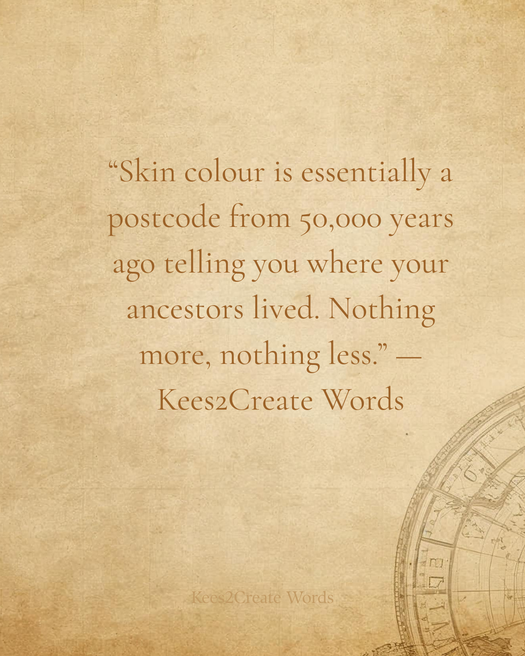 Your skin tone is essentially your ancestors’ postcode from 50,000 years ago. It tells you where they lived. Nothing more, nothing less.