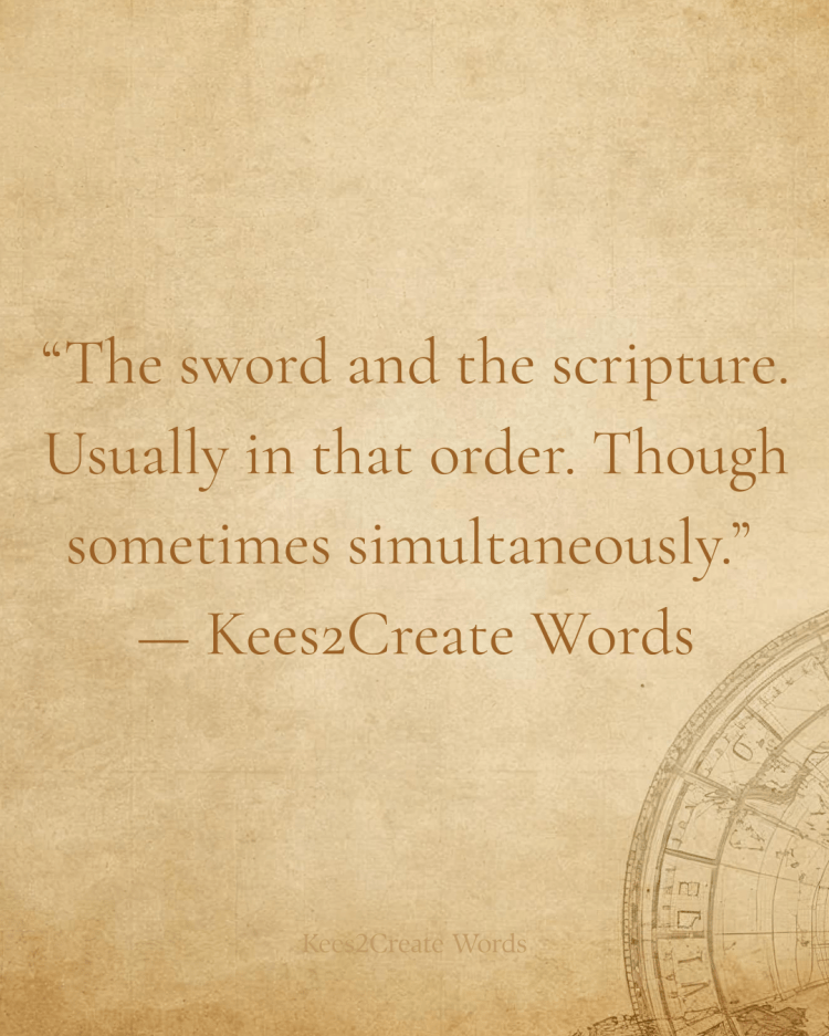 And power, in every culture it emerged, reached for the same two tools — force and story. The sword and the scripture. Usually in that order, though sometimes simultaneously.