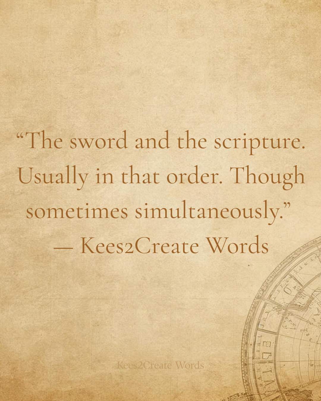 And power, in every culture it emerged, reached for the same two tools — force and story. The sword and the scripture. Usually in that order, though sometimes simultaneously.